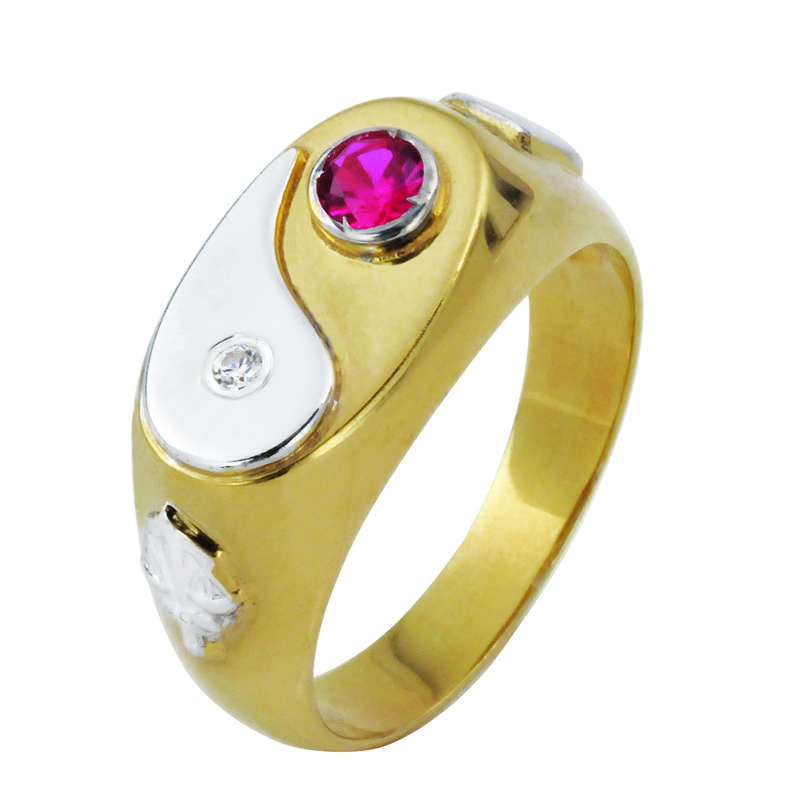 AU 750 brilhante 2 PTS e pedra central sintética, AU 750 brilhante 2 PTS e pedra central natural