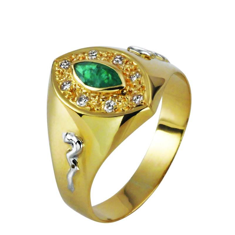 AU 750 brilhante 9 PTS e pedra central natural