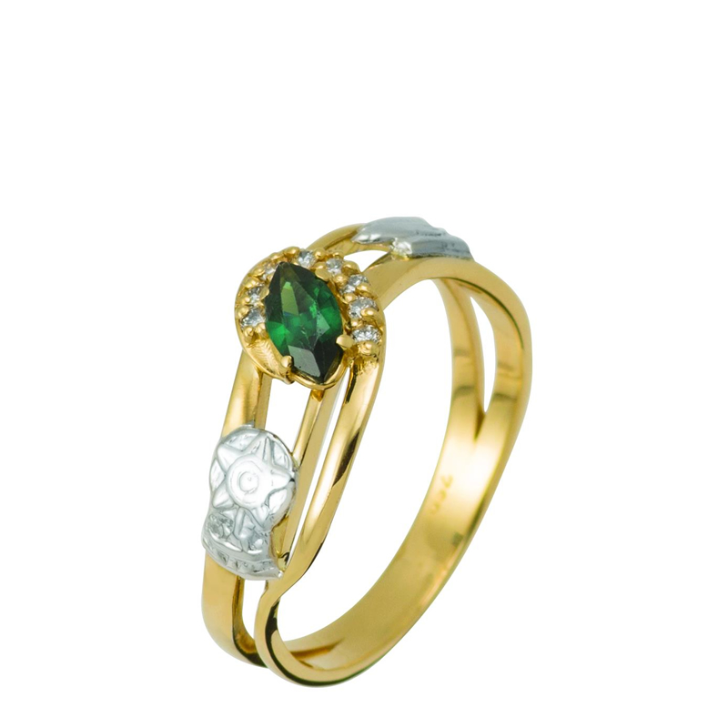 AU 750 brilhante 8 PTS e pedra central sintética, AU 750 brilhante 8 PTS e pedra central natural