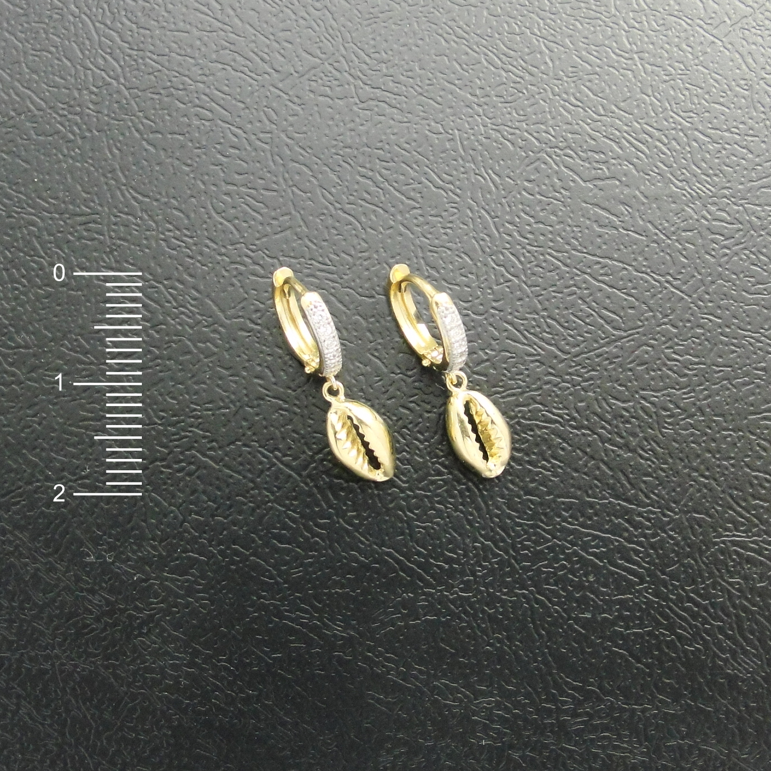 Brinco AU 750 com pedras sintéticas ou naturais modelo búzio