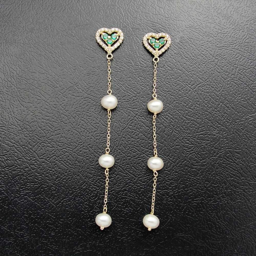 Brinco AU 750 0,40kd diamante 0,25kd esmeralda e pérolas