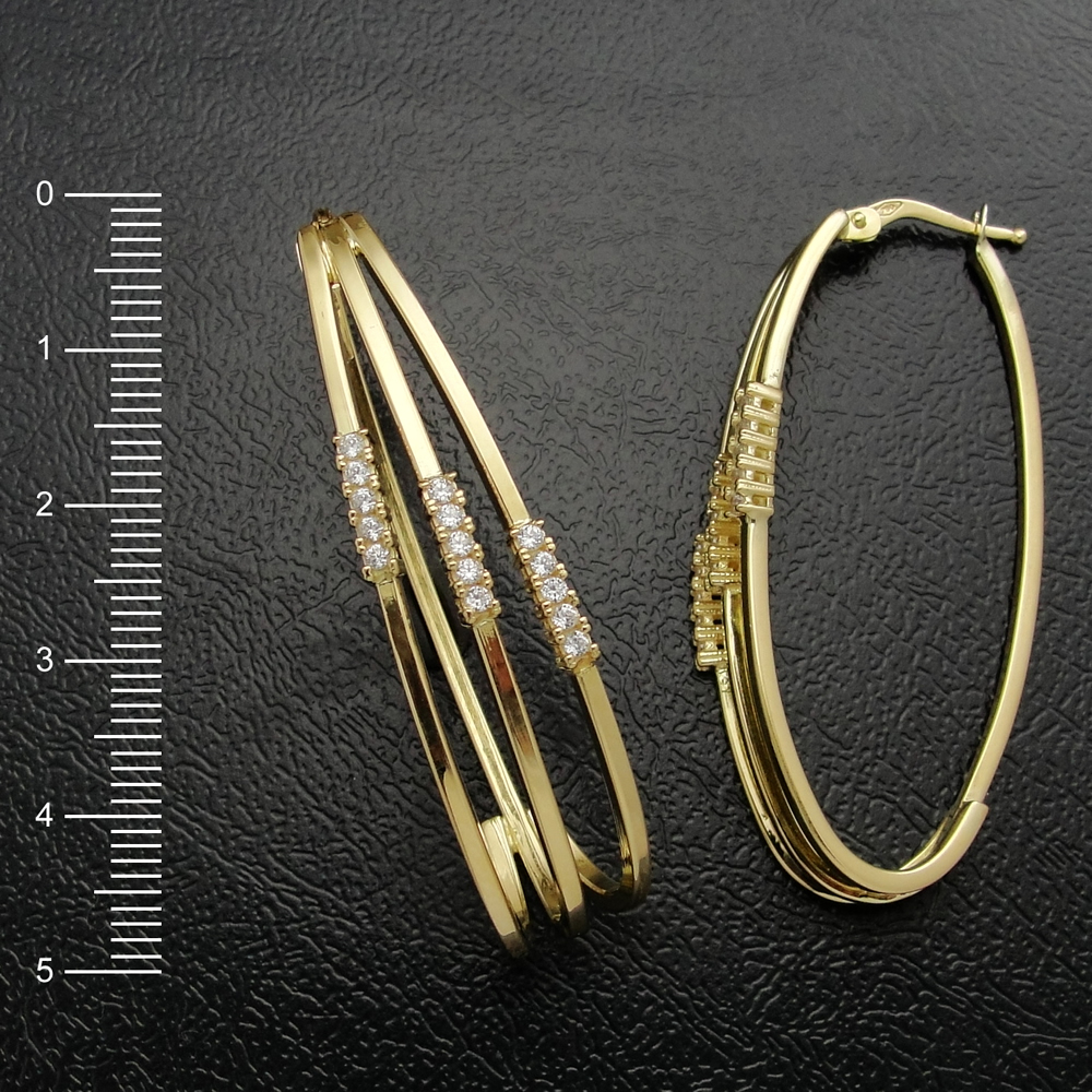 Brinco AU 750 argola tubo oval com 0,45 kd diamante