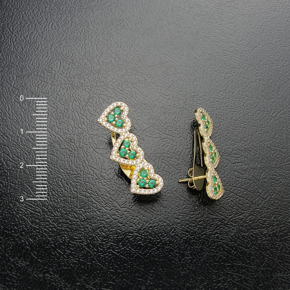 Brinco AU 750 três corações brilhante e esmeralda