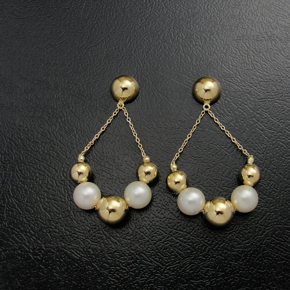 Brinco AU 750 bolas e pérolas