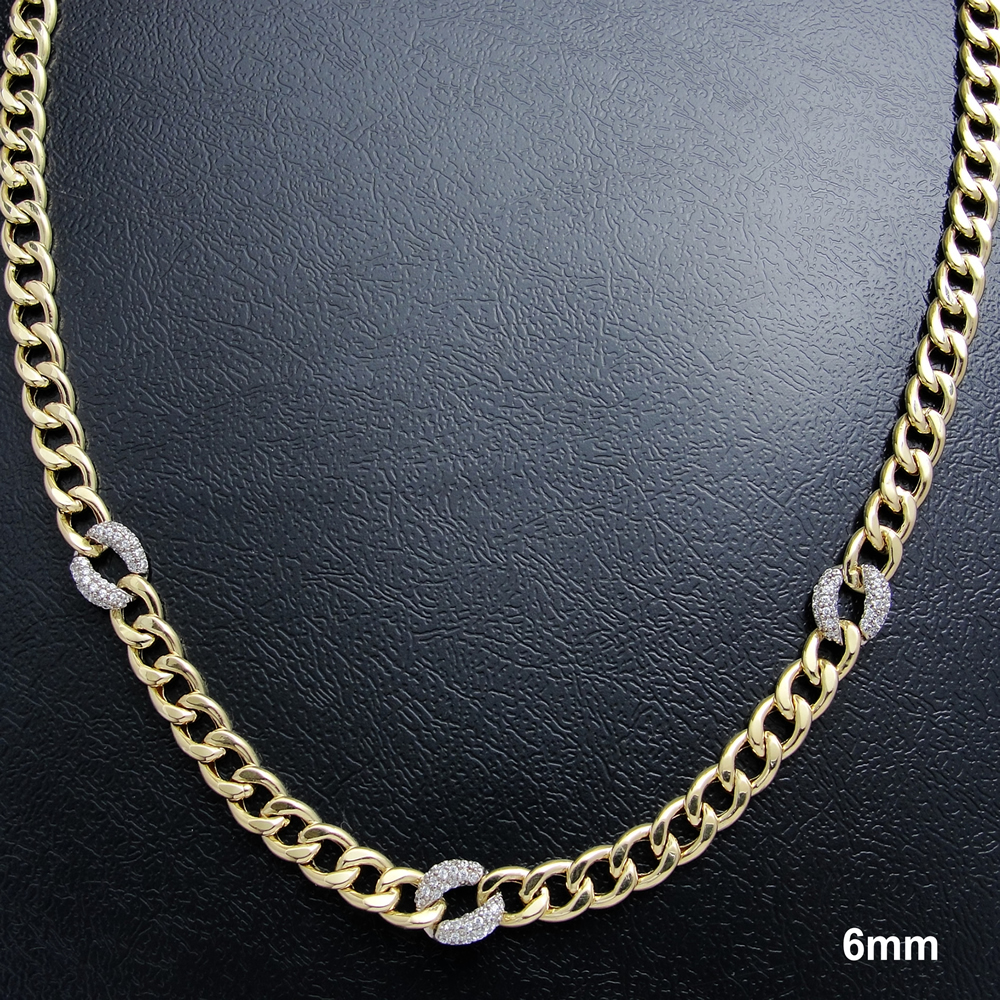 Colar AU 750 Grumet com três elos cravejados