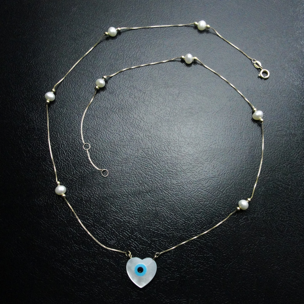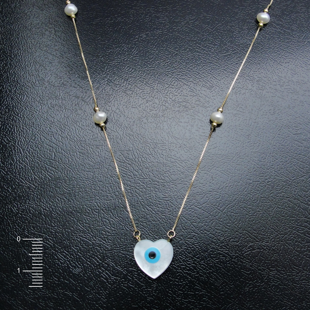 Gargantilha AU 750 Olho Grego Coração