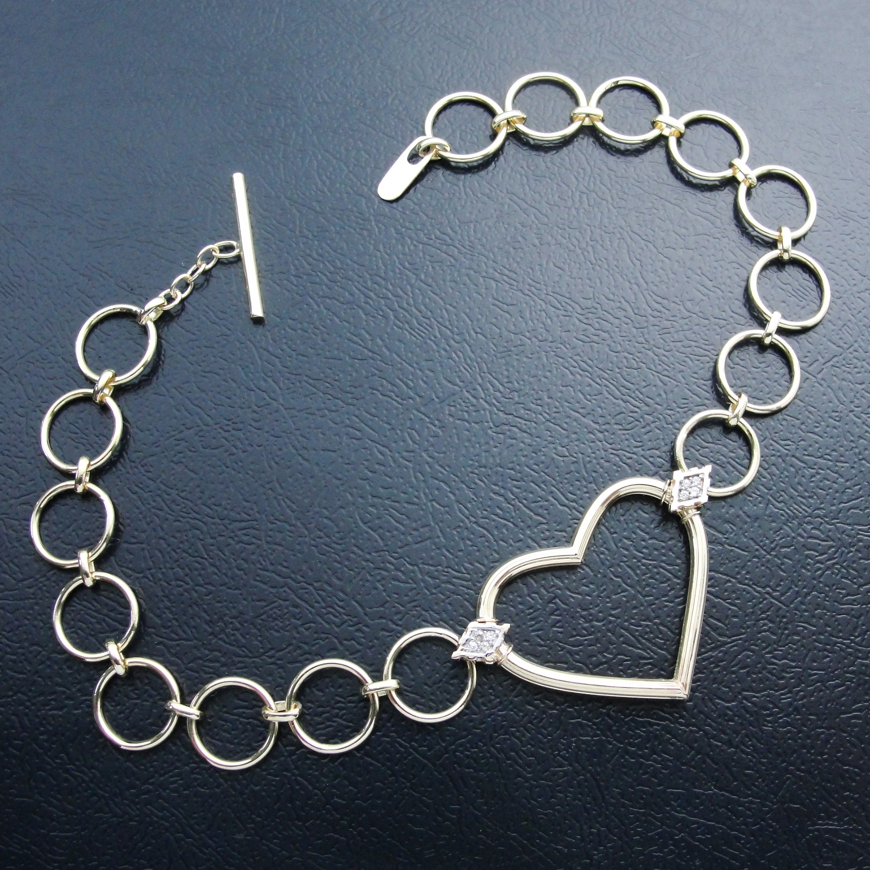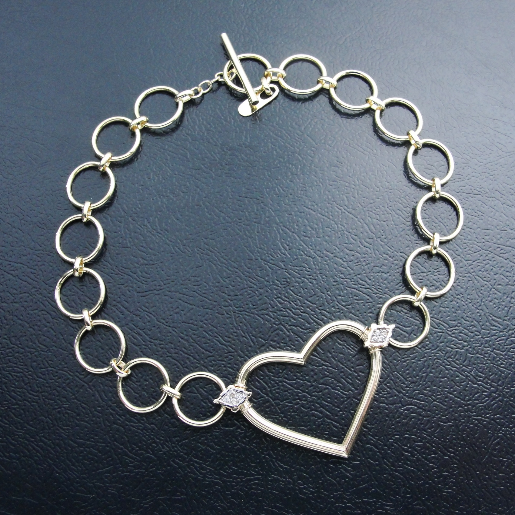Pulseira AU 750 Elos e coração zircônia