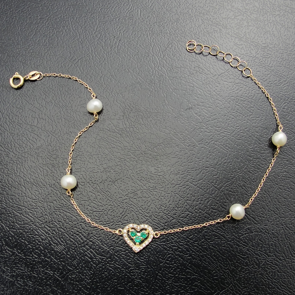 Pulseira AU 750 0,10kd diamante 0,13kd esmeraldas e pérolas